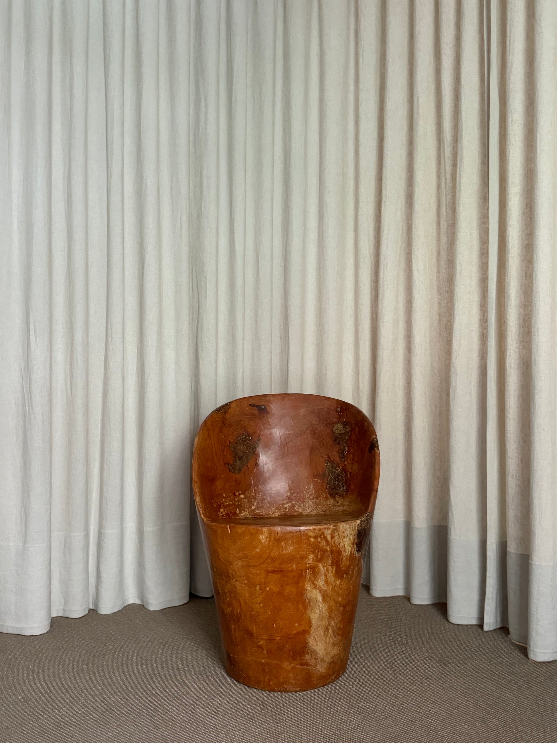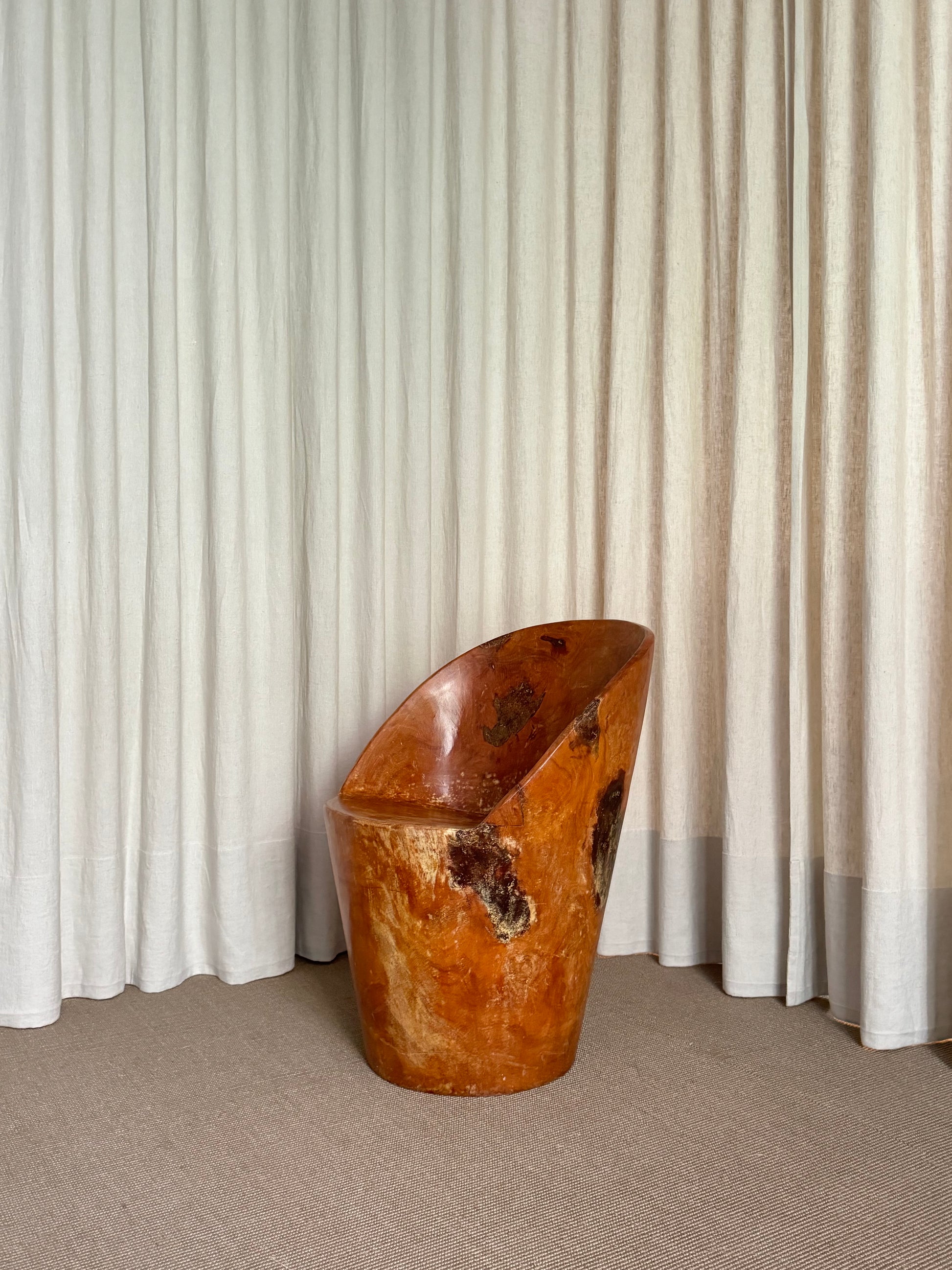 Butaca en tronco de madera de una sola pieza. Diseño de José Zanine Caldas. Brasil, años 1970s.